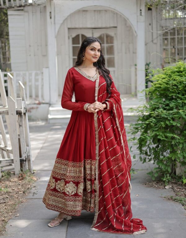 Regal Sindoor Red Cotton Anarkali Ensemble
