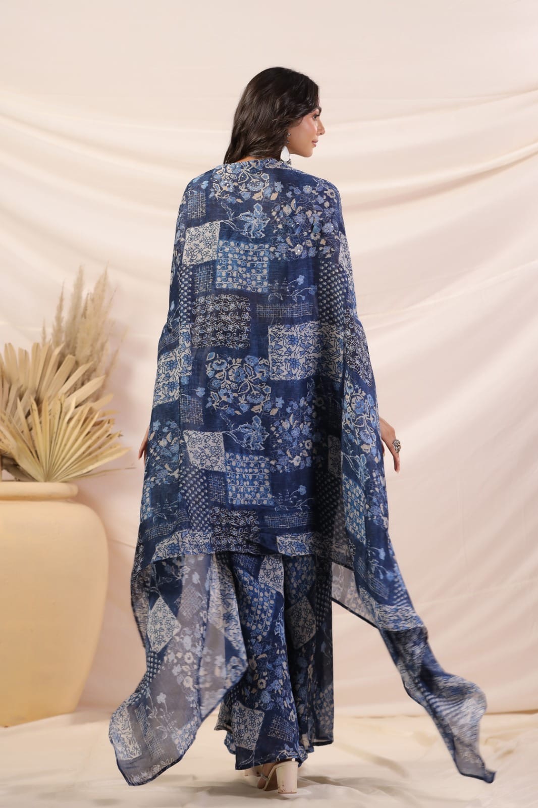 Elegant Mirror Work Kurta, Palazzo, and Dupatta Set