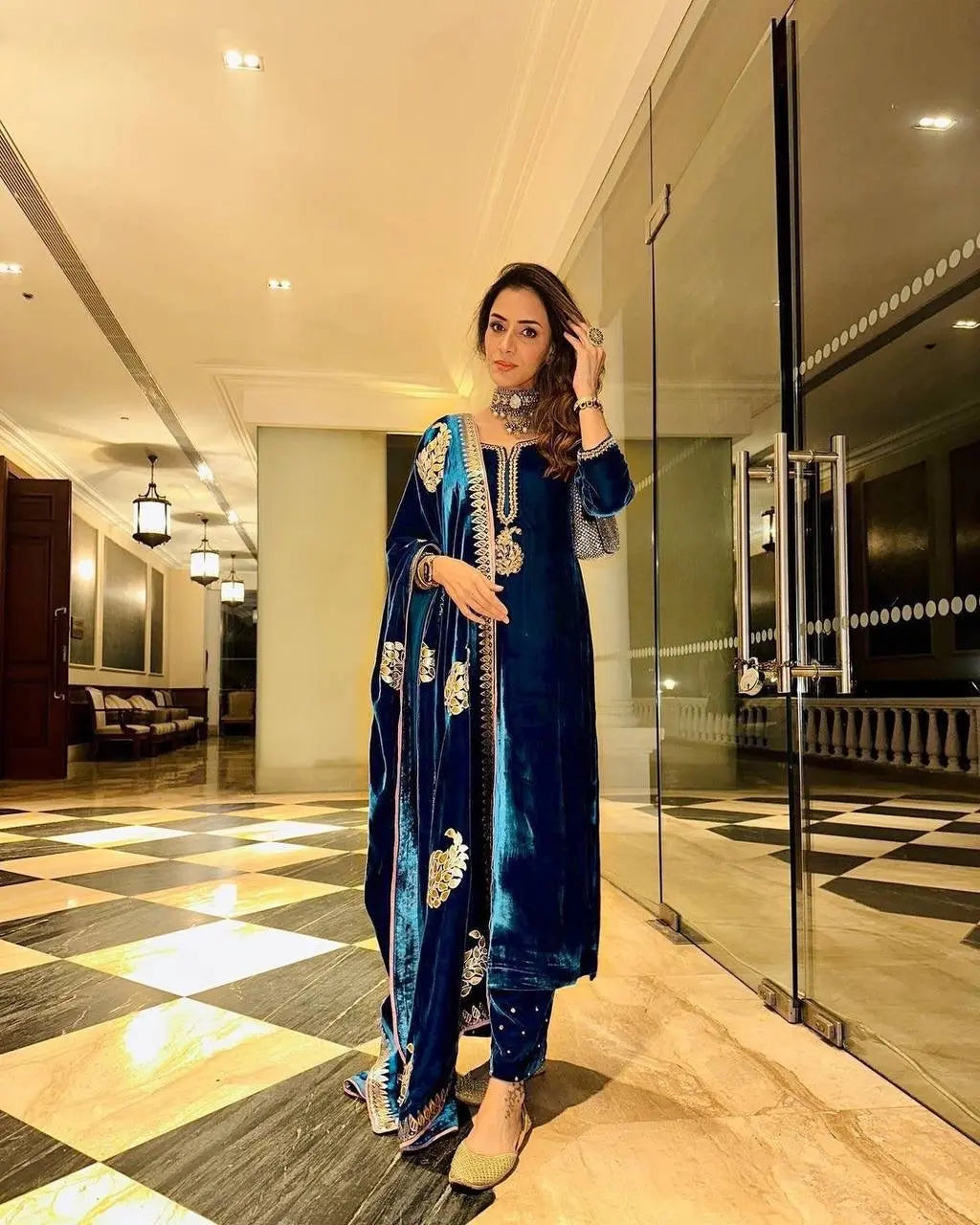 Heavy Embroided Velvet Kurti Pant Dupatta Set (Stitched)