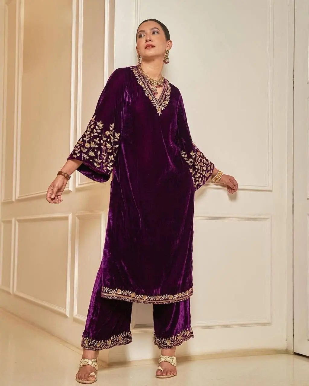 - GOOD QUALITY HEAVY VELVET TOP WITH BEAUTIFUL EMBROIDERED & HEAVY VELVET PLAZZO