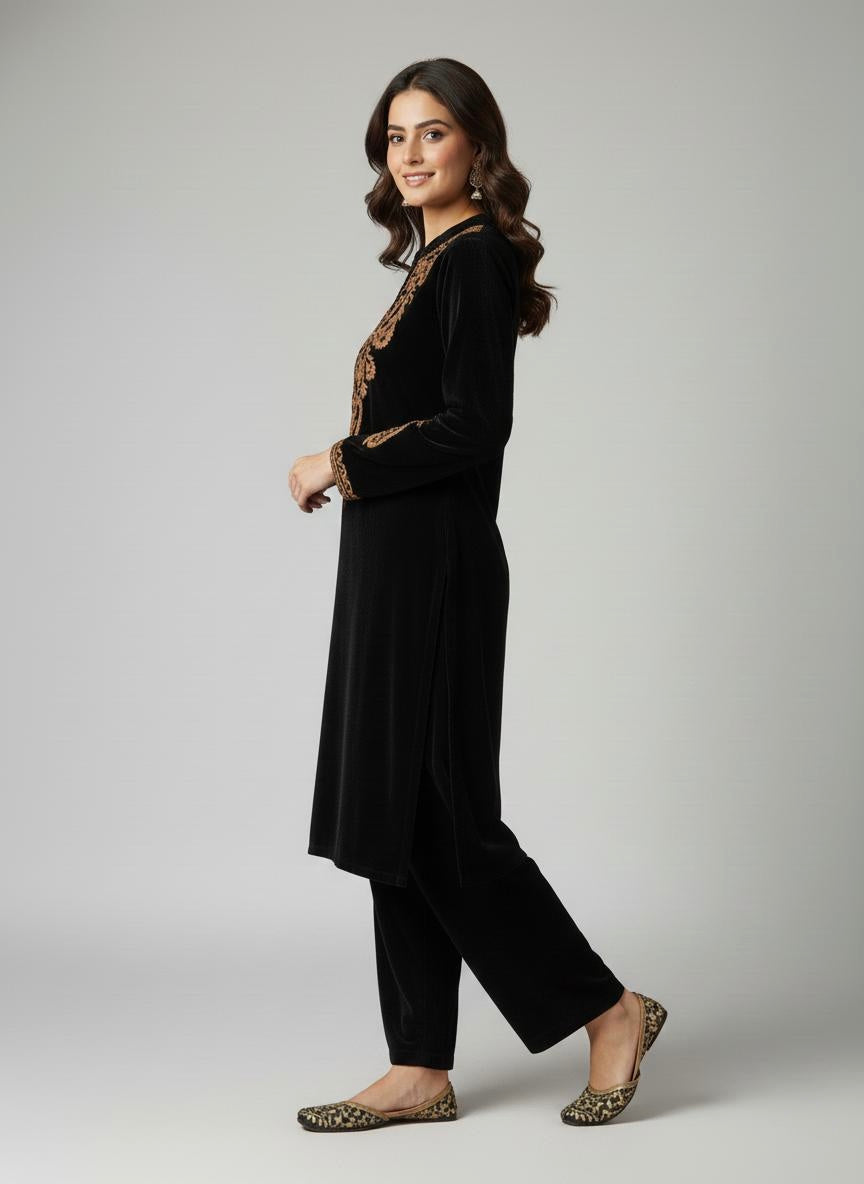 Luxnetics Embroidery Work Velvet Cord Set