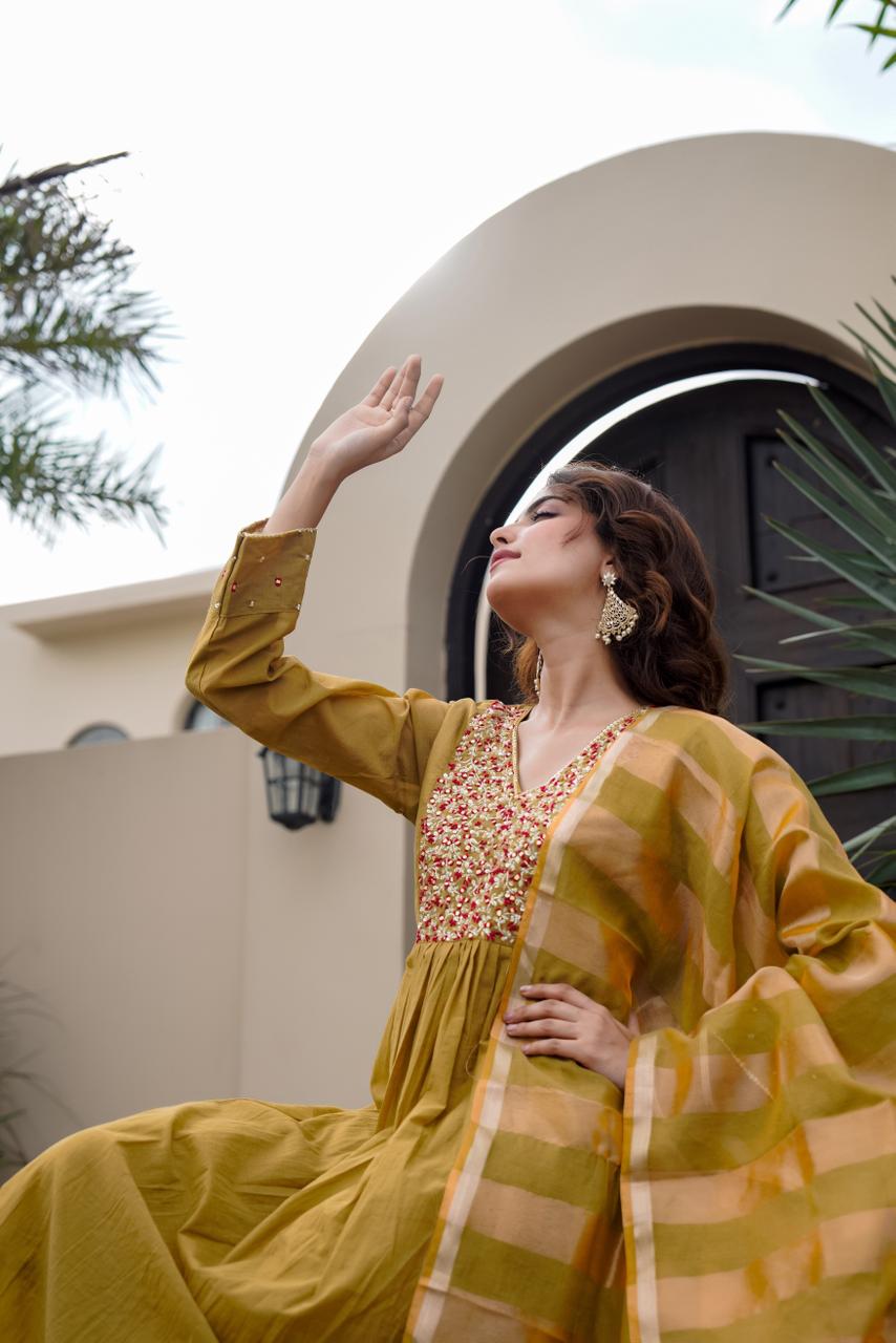 Made from premium Mul Chanderi fabric, known for its soft texture, breathability, and rich appearance