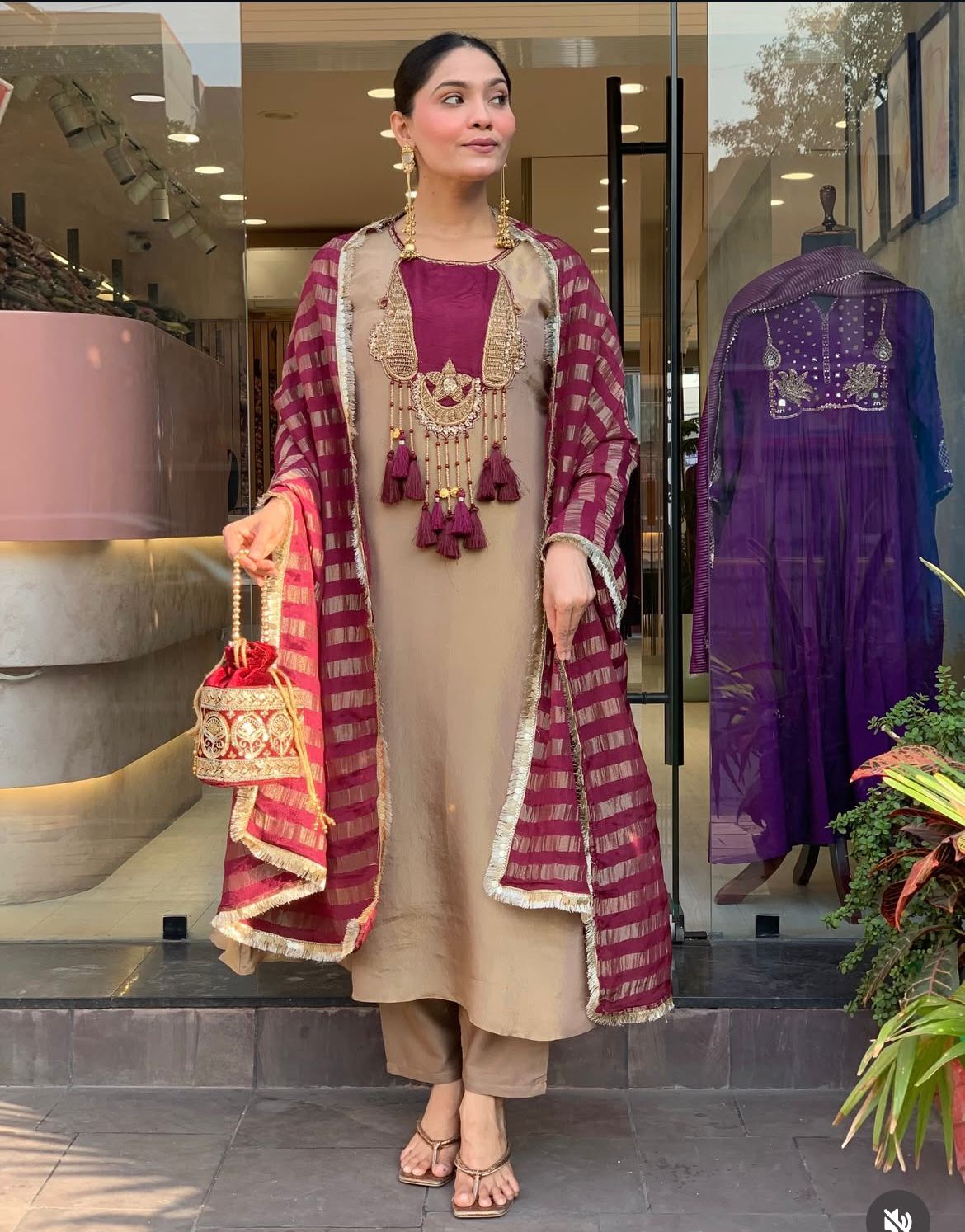 Noor-e-Beige Festive Kurti Set