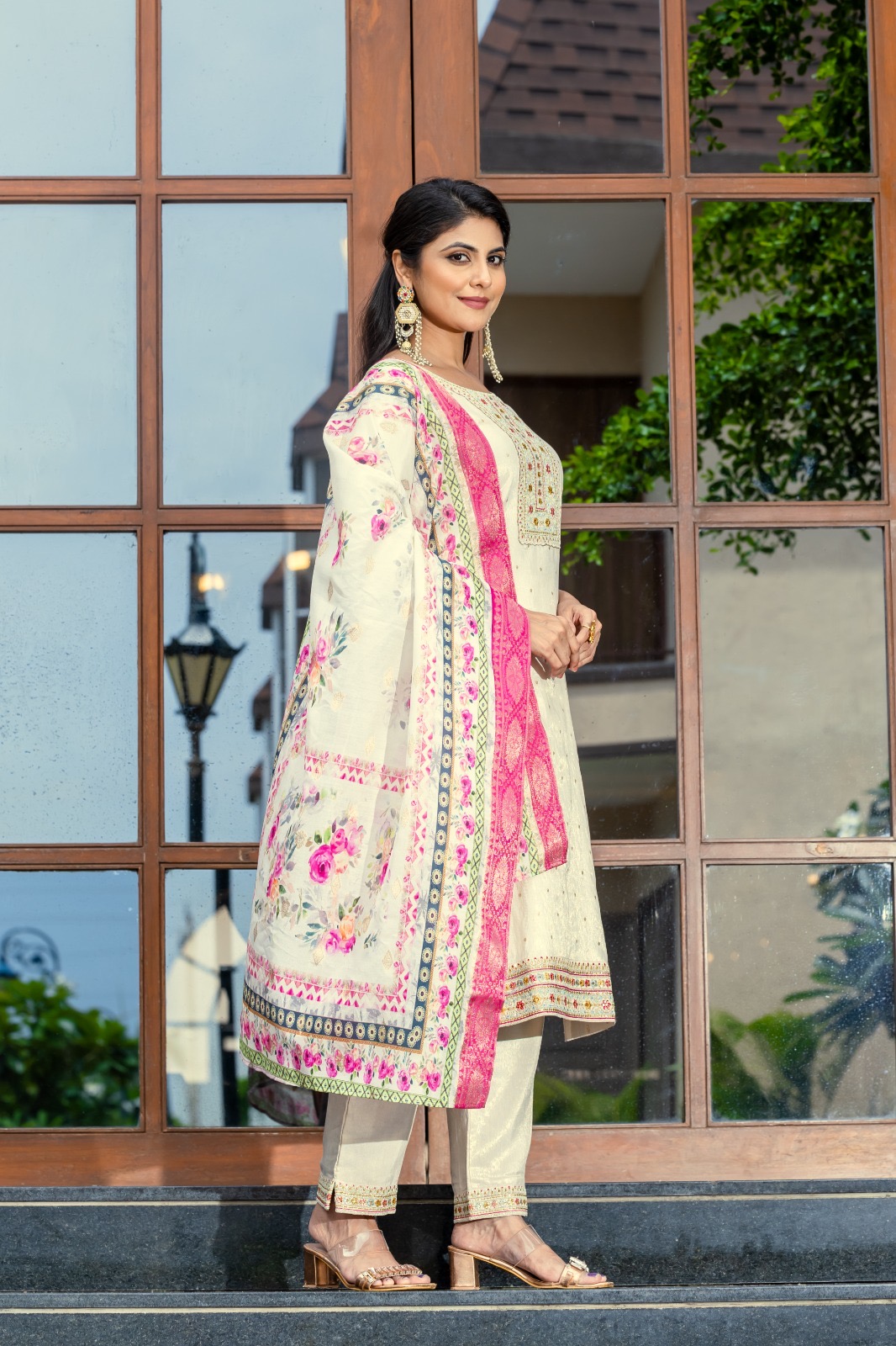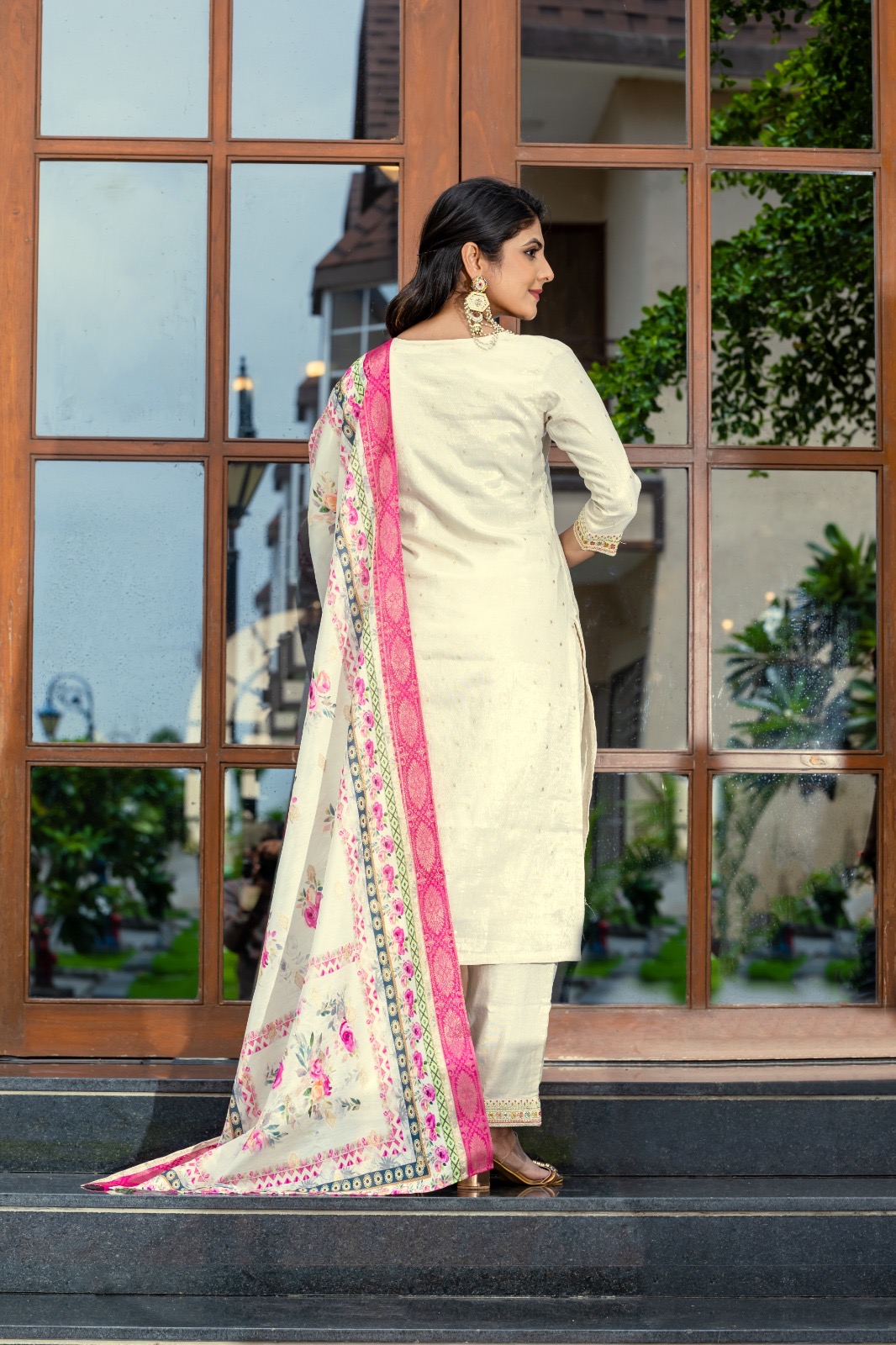 Be the first to review “Off White Kurta Trouser Suit With Dupatta” Cancel reply
