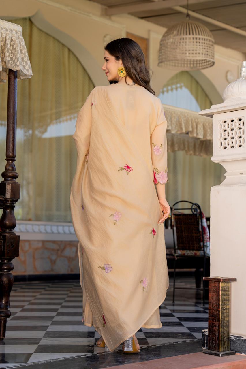 Peach Blossom Embroidered Kurti Set