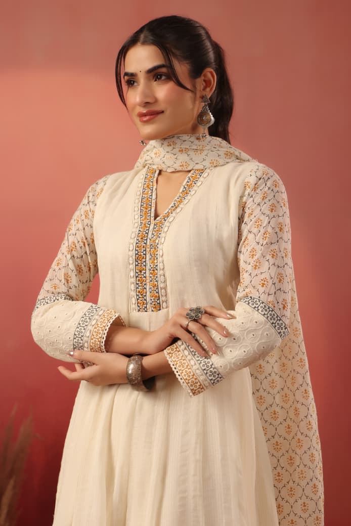 Completing the set is a coordinated Mul Cotton dupatta, beautifully finished to enhance the overall ethnic look. Lightweight and airy, the dupatta adds charm and elegance, making the outfit look complete and polished.