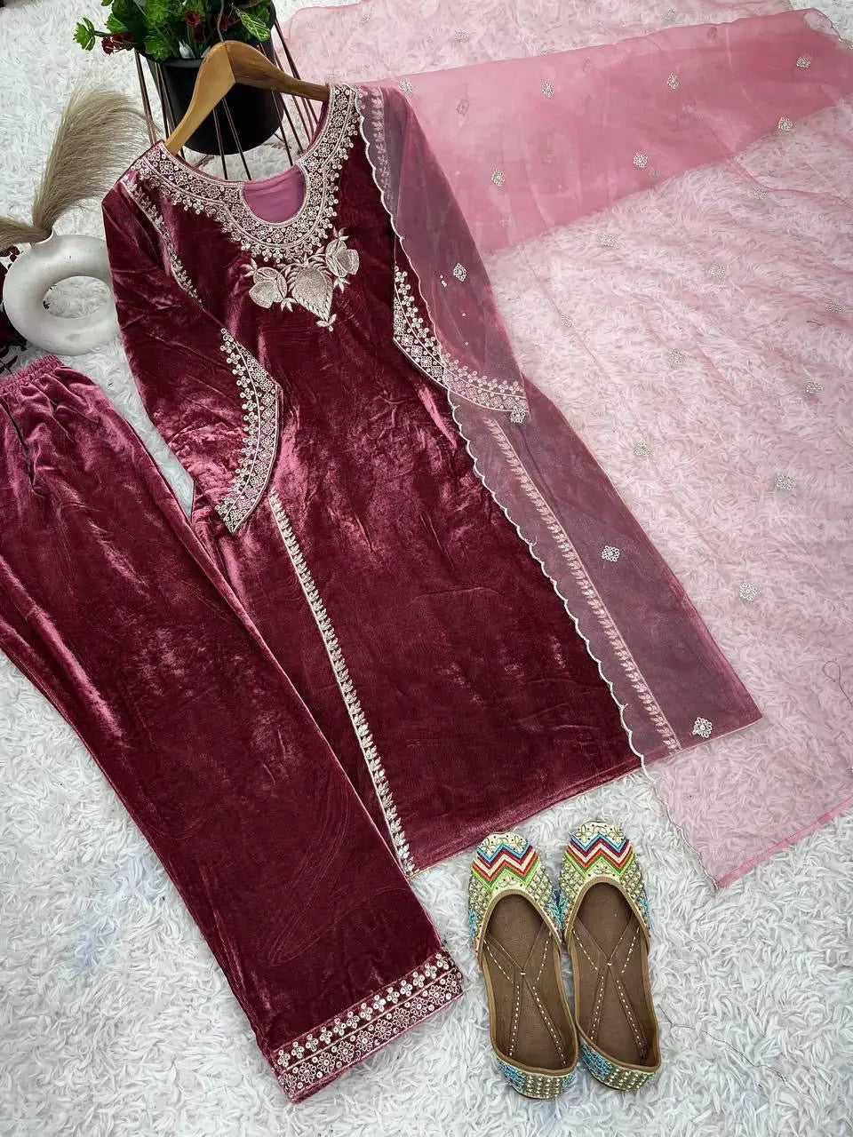 Bottom Fabric* : Viscose Velvet with *Embroidery sequence work( *Full Stiched l*)