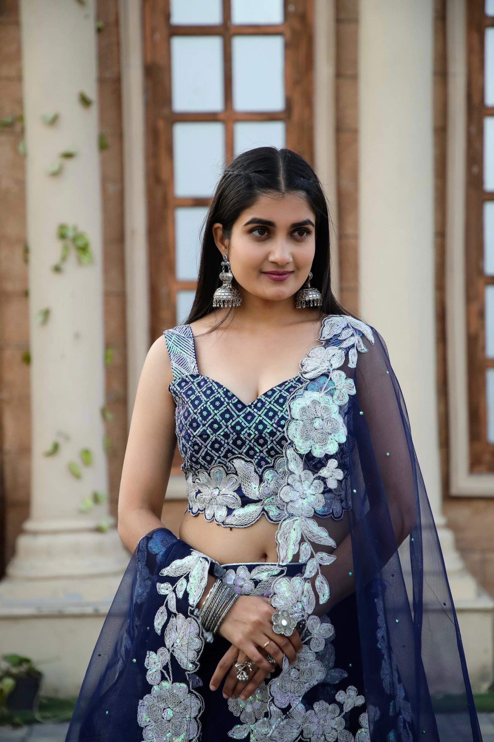 Premium Sequin Work Lehenga Crop Top With Dupatta