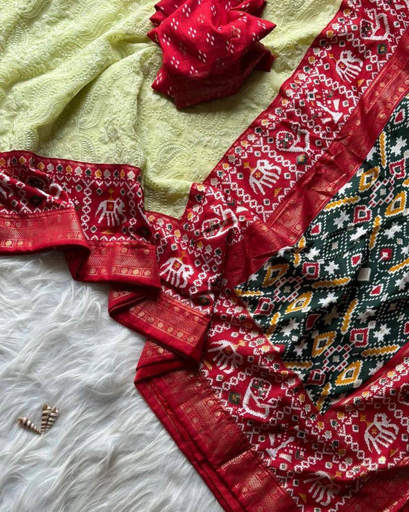 Premium Georgette Chikankari Lucknowi Embroidered Saree