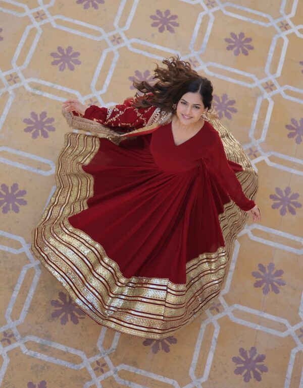 Bahut sundar lehenga hai, iska design aur fabric mast hai. Bilkul paisa vasool lagta hai, amazing look deta hai shaadi ke function mein!