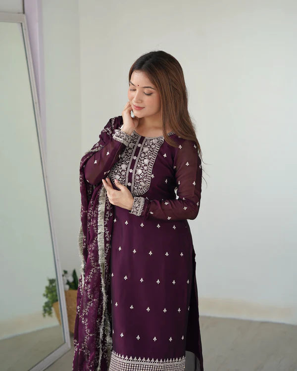 *PRESENTING NEW BEAUTIFUL PURE BLLOOMING VICHITRA SILK FABRIC STRAIGHT FIT KURTA WITH DUPPTA SET,TROUSERS,READY TO WEAR*