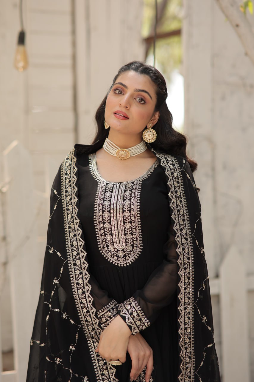 *Get ready to shine with these stunning outfit Made from Faux Blooming And Sequins Embroidered Work. Discover the perfect ensemble to add a touch of glamour to your wardrobe and stand out from the crowd.*