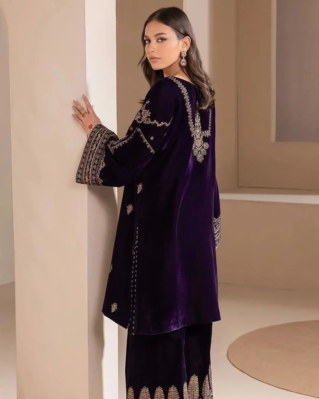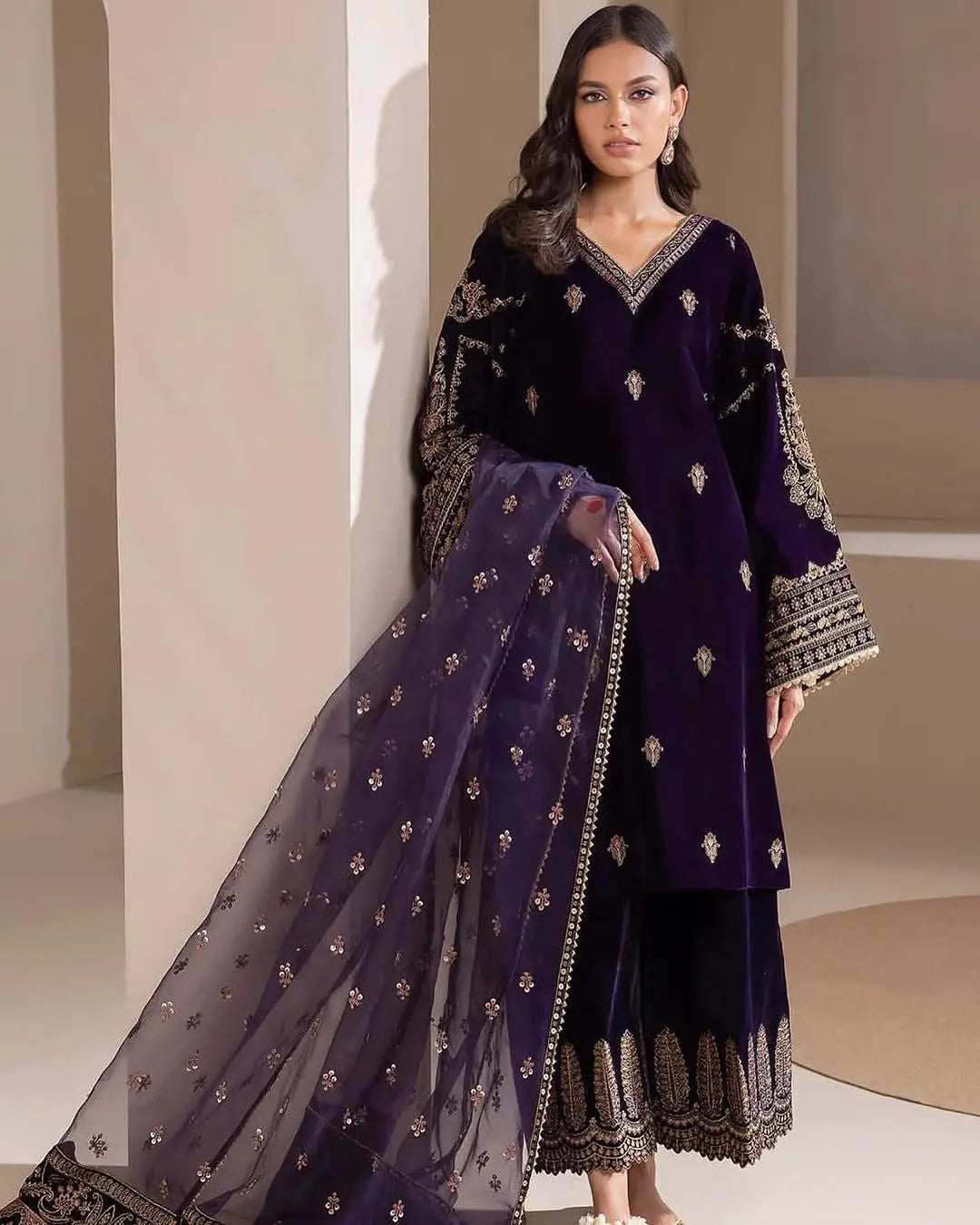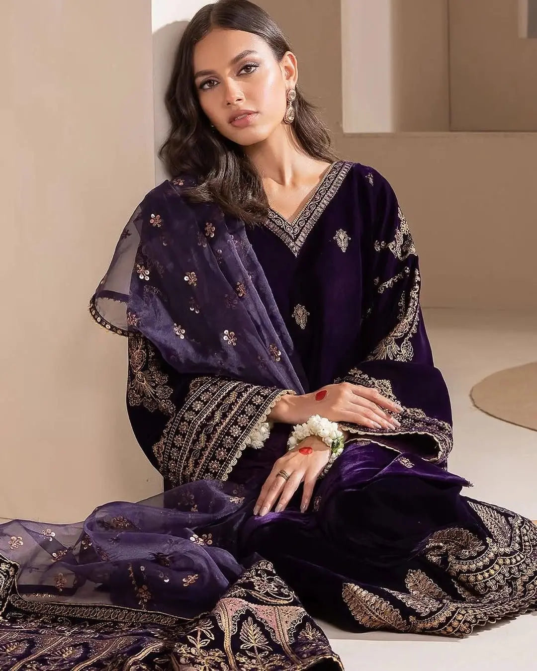Be the first to review “Sequence Embroidery work Winter Wear Velvet Suit” Cancel reply