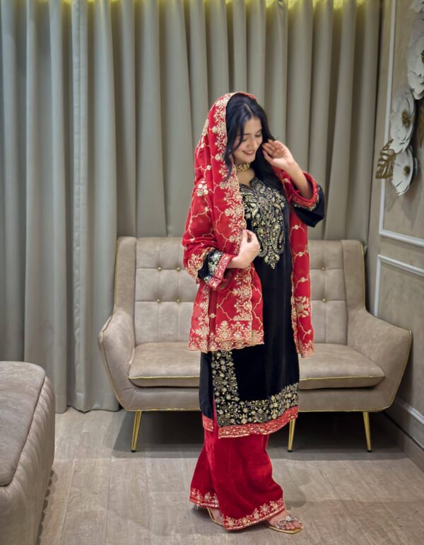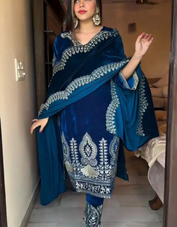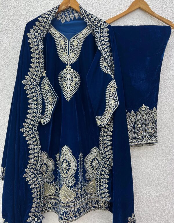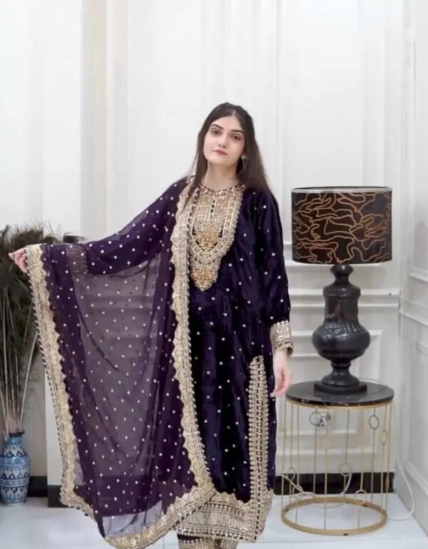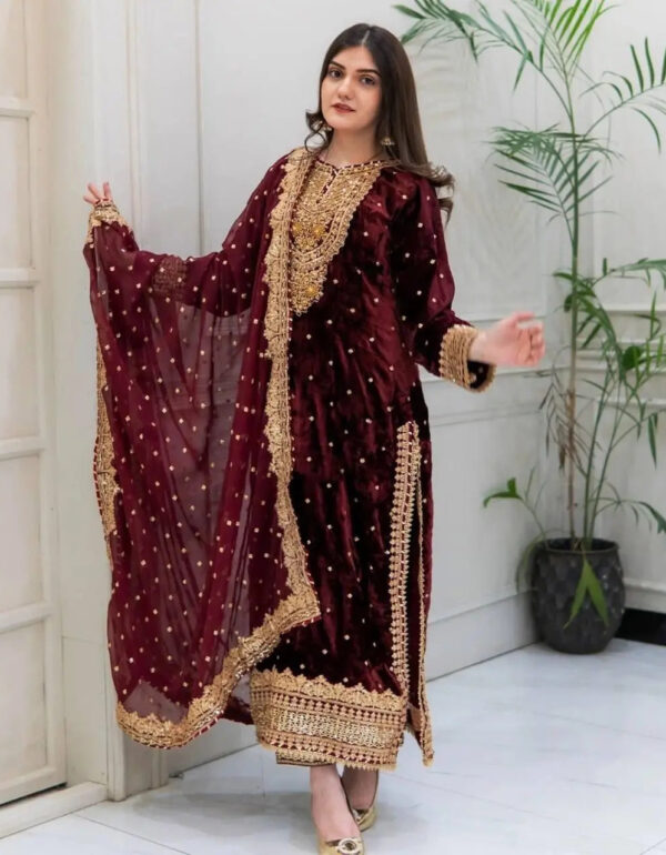 Be the first to review “Zari Embroidery Work Ready to Wear Velvet Kurti Pant Set” Cancel reply