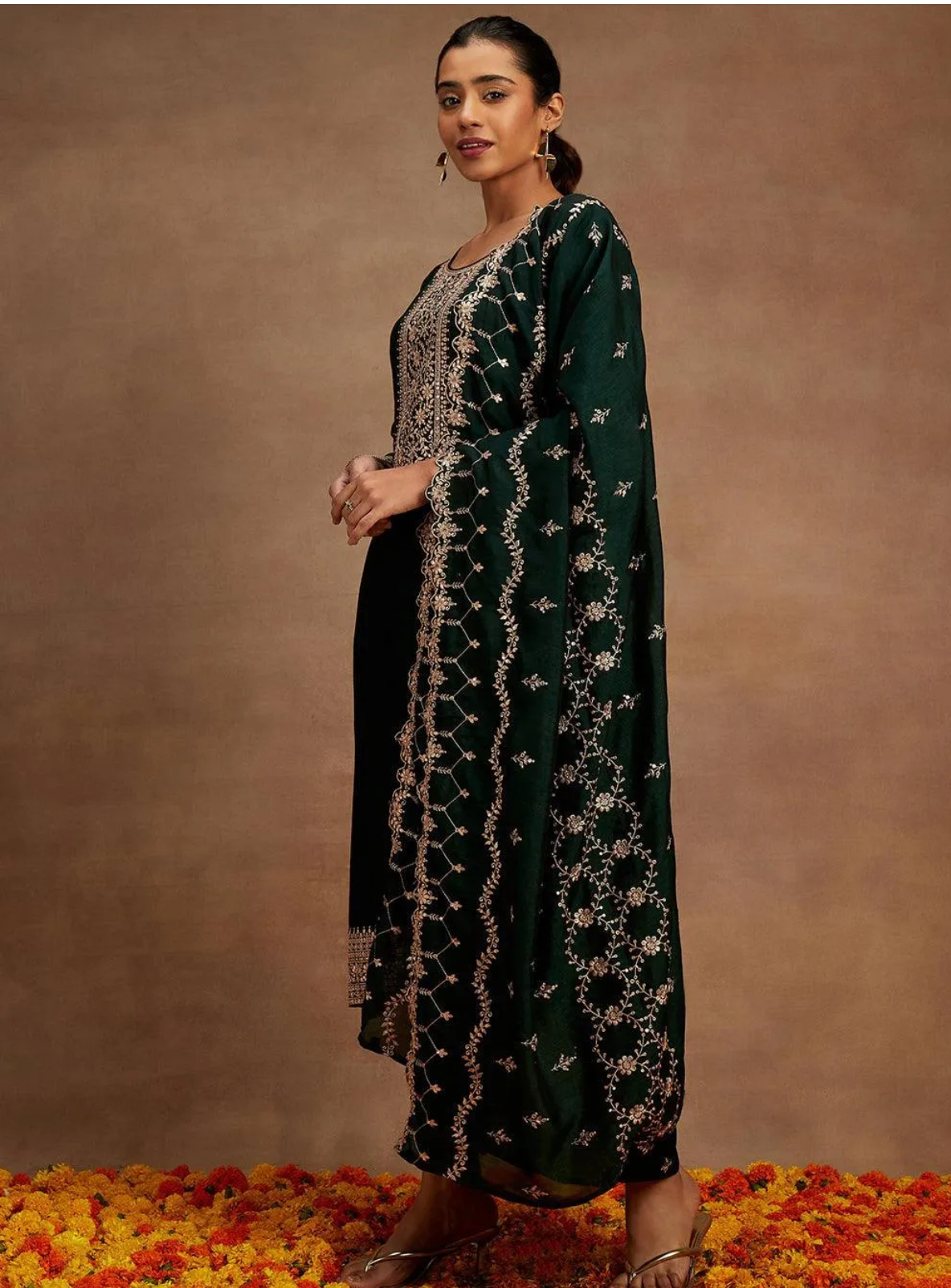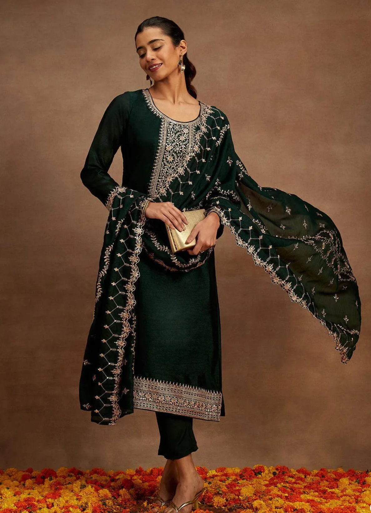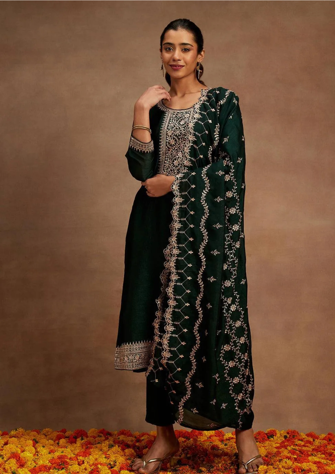 Zehra Emerald Green Embroidered Suit Set